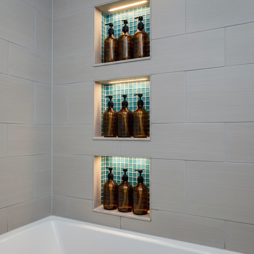 Tired of bottle clutter on the edge of your tub? The solution is as stylish as it is practical: built-in shower niches. A well-designed combo that incorporates recessed shelving into the tilework provides the perfect home for your shampoos, soaps, and scrubs. You can even make it a design feature with contrasting accent tiles or subtle LED backlighting for a high-end touch.