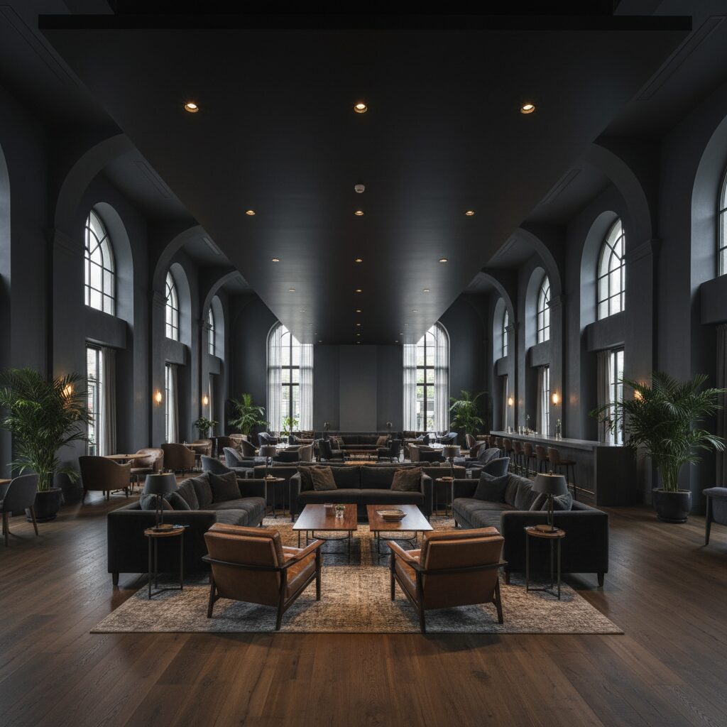 In a dimly lit room, a matte black ceiling can seem to recede and disappear, creating the illusion of an infinite, endless space above. This ‘infinity ceiling’ trick is incredibly effective at making a room feel taller and boundless. It works by removing the visual endpoint that a white ceiling provides, drawing the eye upwards into the void. It’s a powerful, atmospheric choice for lounges, bars, and entertainment spaces.