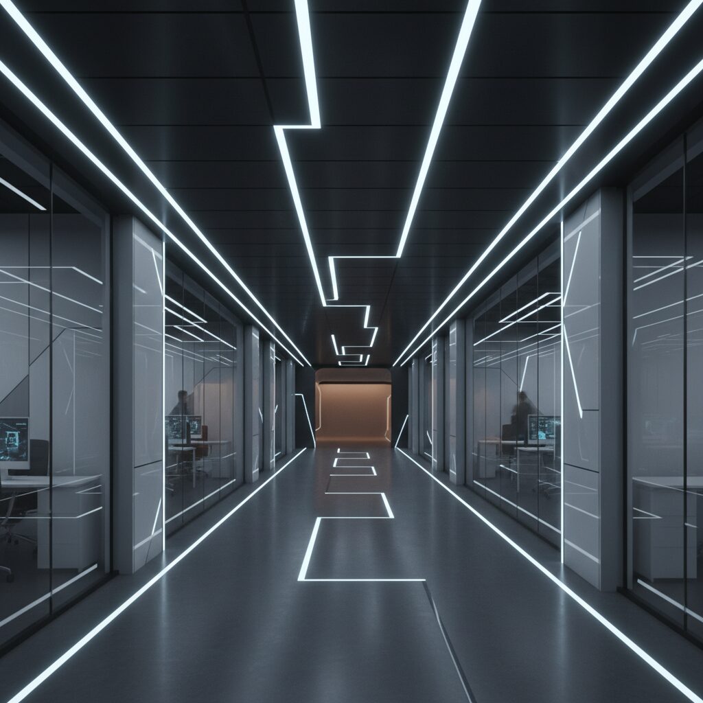 Use your black ceiling as a dark canvas for a brilliant light show. Instead of standard can lights, integrate linear LED strips directly into the grid system. You can create geometric patterns, straight lines for a minimalist look, or a dynamic design that guides the eye. The stark contrast between the bright light and the black ceiling is ultra-modern and impactful.