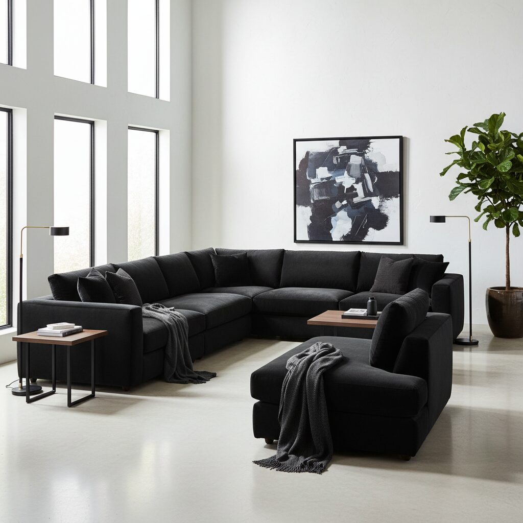 If you aren’t ready to paint the walls, go for statement furniture instead. A large black sectional or a pair of sleek black armchairs can anchor the room and provide that bold aesthetic with less commitment than a full paint job.
