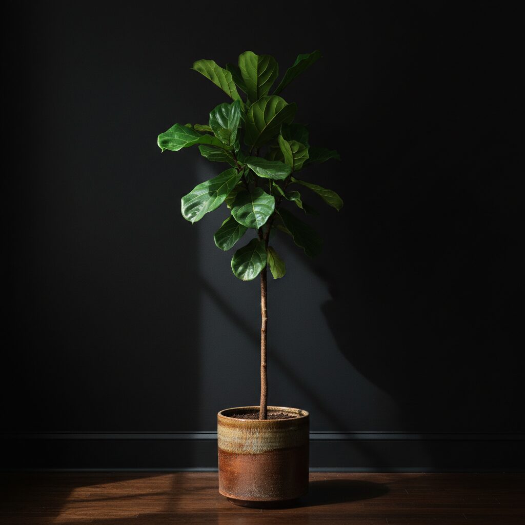 Plants look absolutely stunning against a dark backdrop. The vibrant green of a Fiddle Leaf Fig or a Monstera pops brilliantly against black walls, bringing life, oxygen, and a touch of nature’s brightness into your dark-themed space.