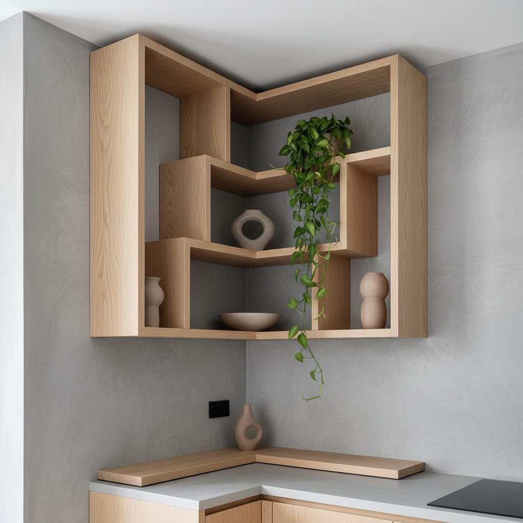 For non-standard corners or for homeowners who want a truly unique look, custom-built shelving is the answer. This could mean a cabinet with angled drawers, asymmetrical open shelves, or a unit built to perfectly house a specific item. Working with a cabinet maker allows you to create a one-of-a-kind solution that perfectly matches your kitchen’s style and your specific storage needs.