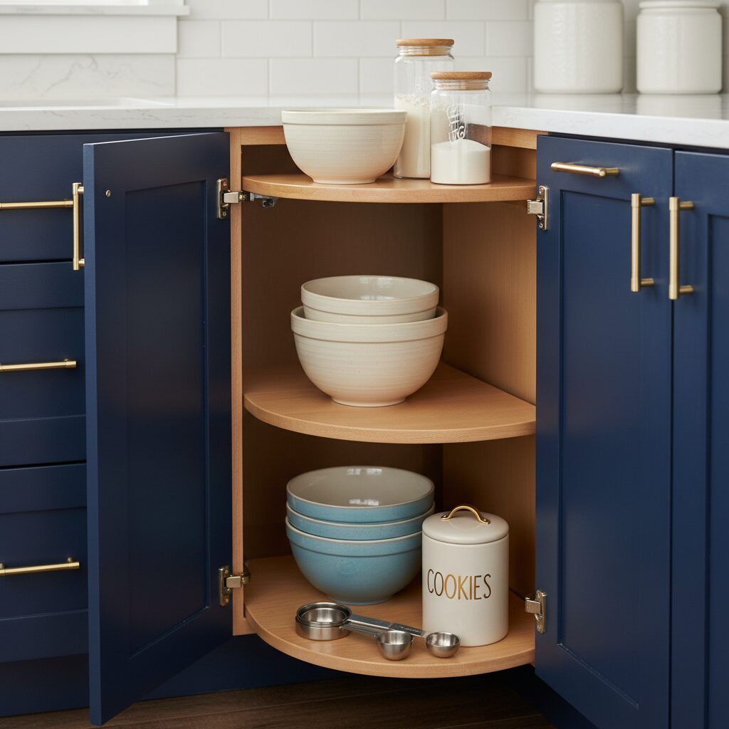 Who says a corner needs a door? Embrace the open-shelving trend to make your kitchen feel brighter and more spacious. Corner shelves are perfect for showcasing your favorite cookbooks, beautiful dishware, a collection of mugs, or even a few small plants. It turns a potentially clunky corner into a stylish focal point and keeps frequently used items within easy reach.