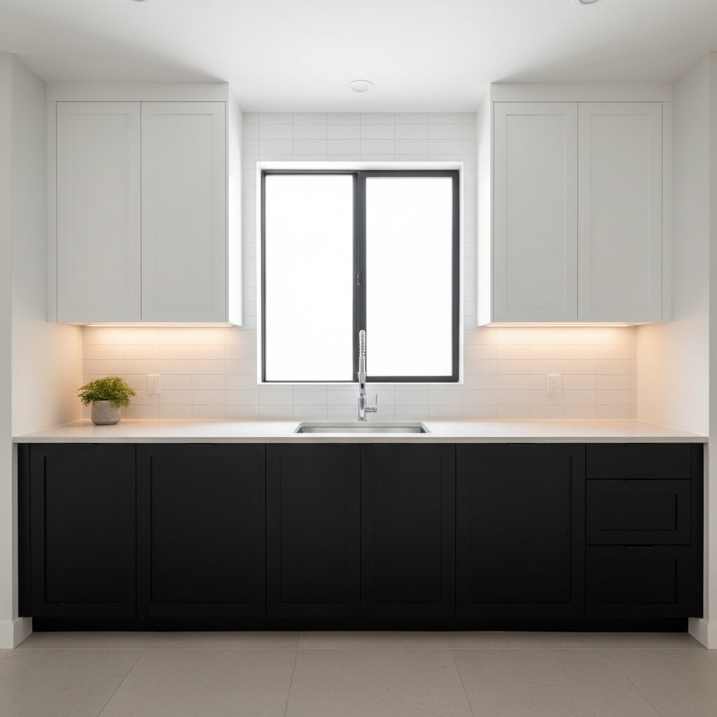If you’re concerned about an entire kitchen of black cabinets feeling too heavy, a two-tone approach is the perfect solution. Use black for the lower or base cabinets to ground the space, and choose a lighter color, like white or a soft gray, for the upper cabinets. This technique draws the eye upward, making the kitchen feel taller and more open, while still delivering that bold, black-cabinet impact.