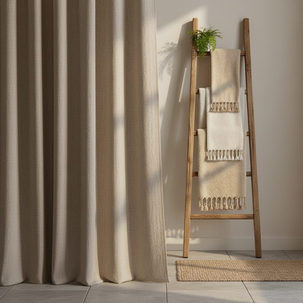 Hard surfaces like tile and stone can sometimes feel cold. Soften the look and feel of your neutral bathroom by introducing natural textiles. Think a beautiful linen shower curtain, plush Turkish cotton towels, or a woven jute bath mat. These elements add texture, warmth, and a touch of lived-in comfort to your serene retreat.