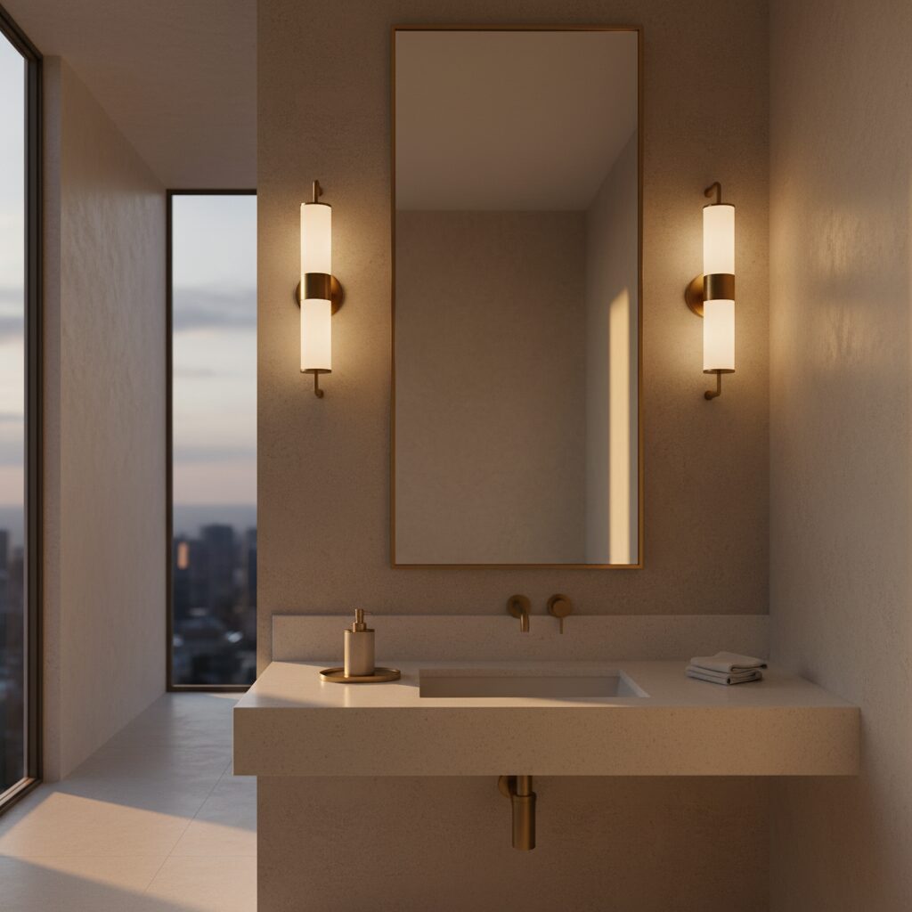In a neutral space, lighting can be more than just functional—it can be a key design feature. Choose a fixture that doubles as sculpture. A pair of elegant brass sconces flanking the mirror, or a delicate woven pendant light hanging in the center of the room, can add a layer of personality and sophisticated ambiance to your bathroom.
