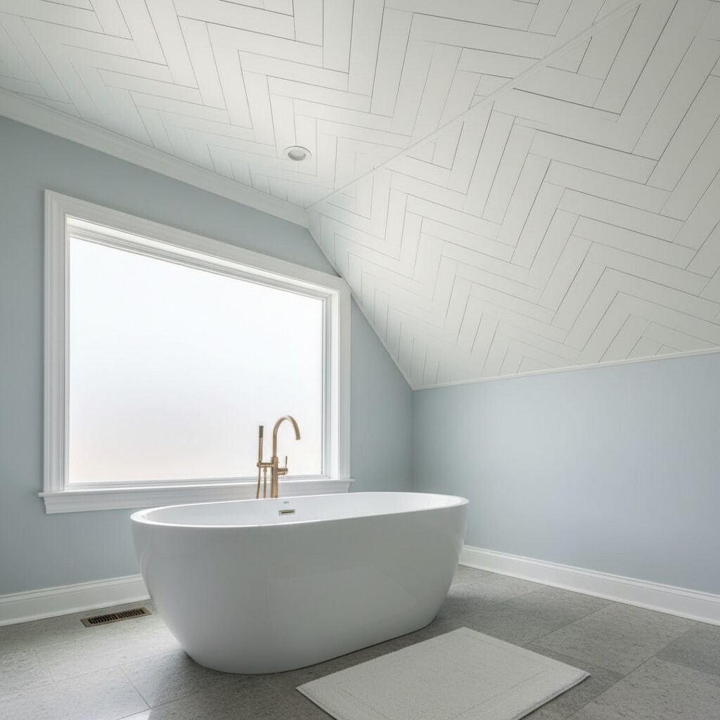 5. Intricate Artistry: The Herringbone Shiplap Ceiling