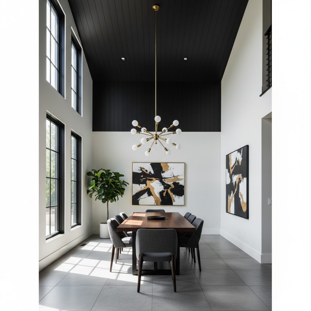 3. Moody & Modern: The Bold Black Shiplap Ceiling