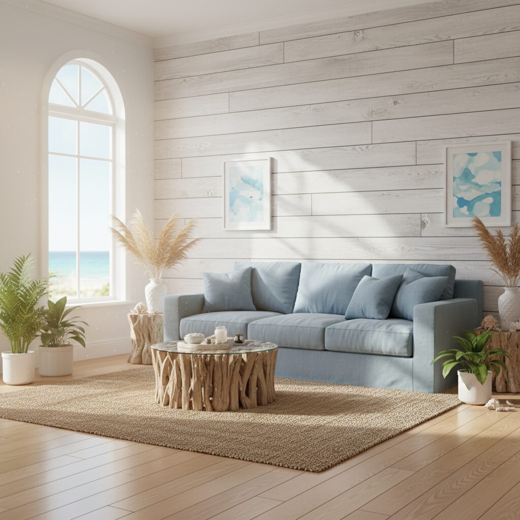 You can’t go wrong with a classic. Horizontal shiplap planks create a clean, timeless look that’s perfect for modern farmhouse, coastal, or traditional decor. Painted crisp white, it brightens a room, while a natural wood finish adds rustic warmth. It’s a versatile choice that works beautifully behind a bed, in a living room, or even in a bathroom.