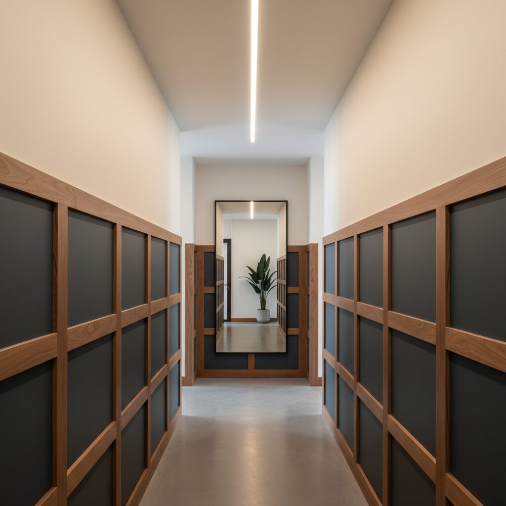 For a contemporary and sophisticated vibe, consider vertical wood slats. This design draws the eye upward, making ceilings feel higher and spaces appear larger. Thin, closely spaced slats in a warm oak or rich walnut create a stunning textural effect that’s both minimalist and luxurious. It’s a perfect choice for entryways, media walls, or home offices.